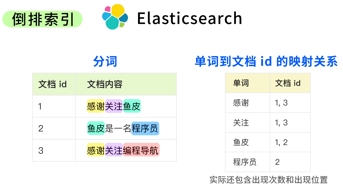 鱼皮点点头:虽然标题里并没有 "鱼皮教程" 这 4 个连着的字,但因为 ES 会自动分词,把 "鱼皮" 和 "教程" 拆开分别匹配,所以就搜到了。