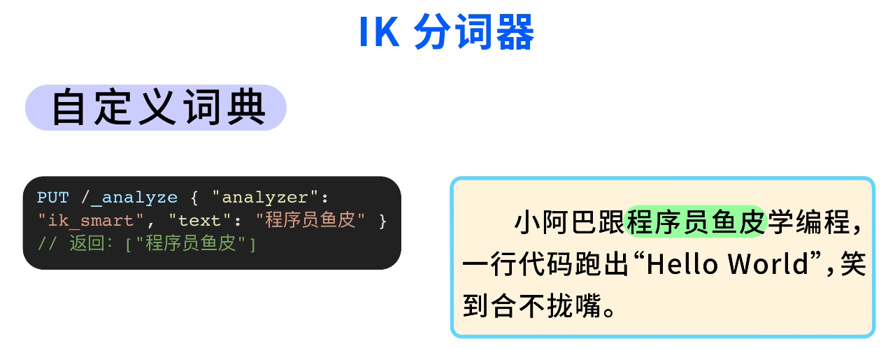 此外,IK 还支持自定义词典。比如你想让 “程序员鱼皮” 作为一个完整的词不被拆开,加到词典里就行了。