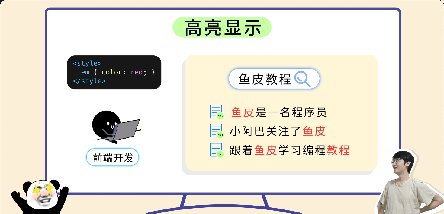 返回结果里,命中的关键词会自动被 <em> 标签包起来,前端拿到之后加个颜色样式就搞定了。