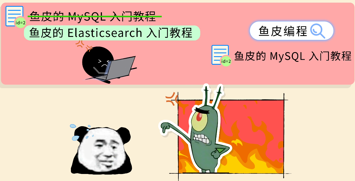 这时,号称 "后端之狗" 的鱼皮路过。他瞄了一眼你的代码,嘲笑道:肯定要用 Elasticsearch 来做搜索功能啊!