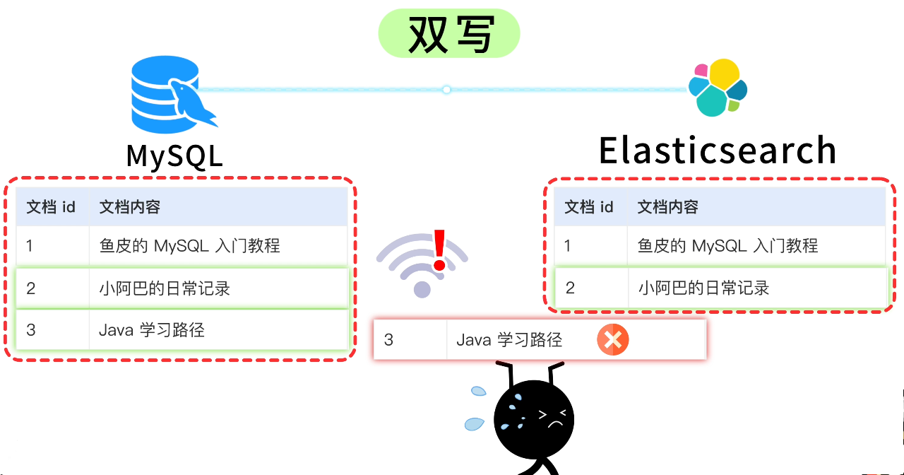 你有些头大:唉,ES 和 MySQL 是两套独立的系统,数据不会自动同步啊,咋办啊?