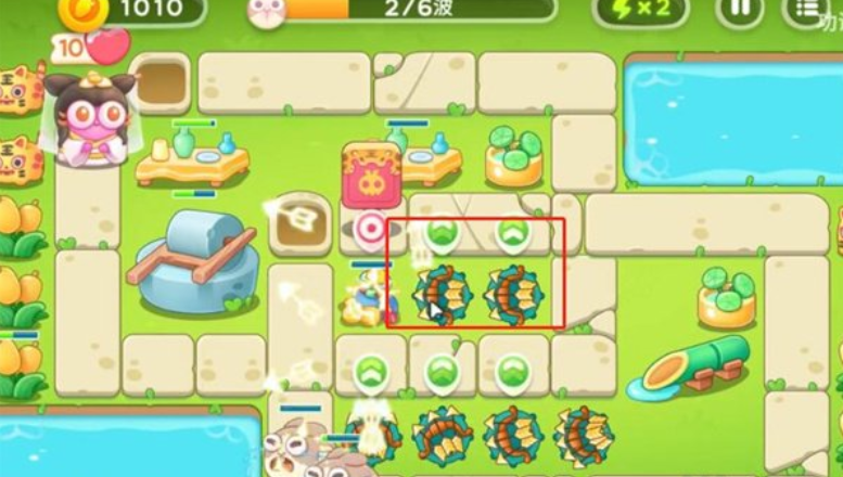 2、第一波,兔子来前在下面再加多重箭升一级,之后再加多重箭,升一级。