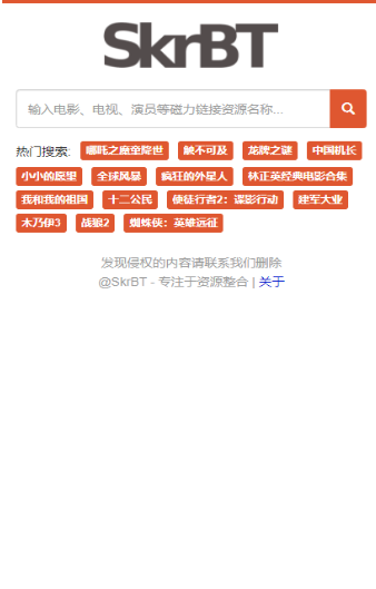 当前官方唯一登录入口为:https://skrbtue.top/,建议收藏该网址避免失效。作为专业磁力搜索工具,其特色在于输入链接即可智能跳转目标页面,支持各类资源的高效检索。