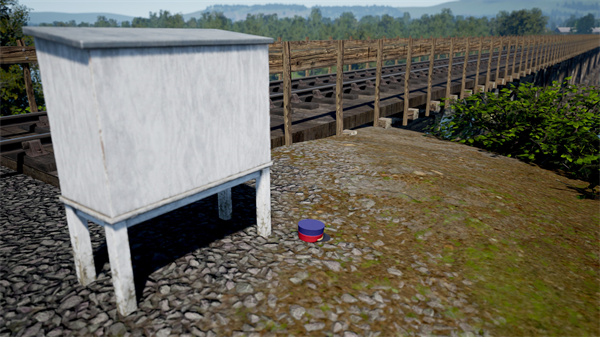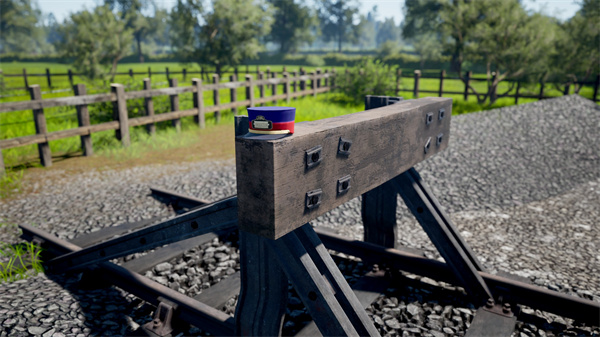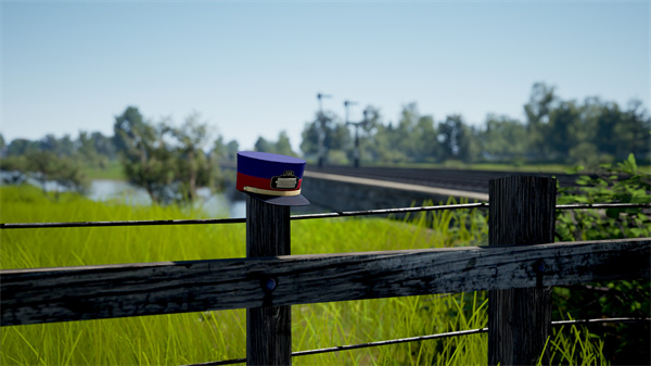 从低语树林站向西行驶直到卡巴尔努交汇信号箱,附近面向东侧桥梁的木栅栏上端放着一顶列车长帽。