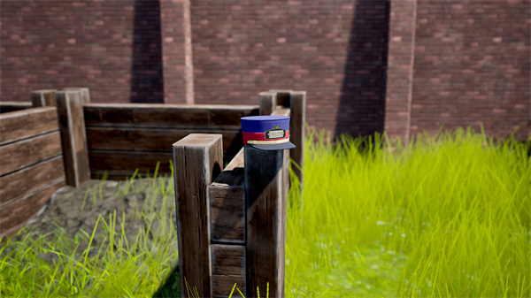 在南墙后方,可以找到一顶指挥帽,放在一些木桶上。