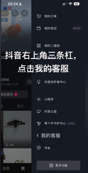 2. 在展开的侧边栏中找到【我的客服】选项;