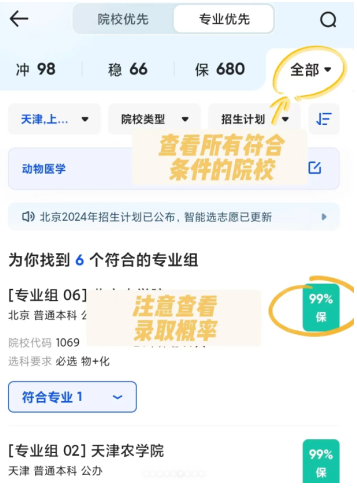 但需要注意:系统给出的录取概率仅供参考,建议只将90%以上概率的专业视为稳妥选择。务必亲自查看各专业历年位次变化趋势,对持续走高的专业要保持警惕。