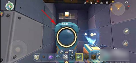 3、手拿着升级元件A型,点击传送舱,如下图所示。