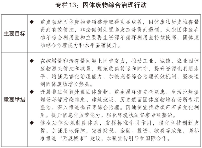 二是持续深入推进污染防治攻坚和生态系统优化。深入打好蓝天、碧水、净土保卫战,实施固体废物综合治理行动,强化新污染物治理。开展城镇环境基础设施提质增效行动。全面推进美丽河湖、幸福河湖建设。推进水土流失综合治理。继续支持沿江化工腾退地块土壤污染治理和磷石膏污染综合整治。统筹推进重要生态系统保护和修复重大工程,扎实推进“三北”工程三大标志性战役,实施自然保护地整合优化。深入推进生态产品价值实现。完善多元化生态补偿机制,推动生态环境领域法律法规制修订。持续建设国家生态文明试验区,建设美丽中国先行区。