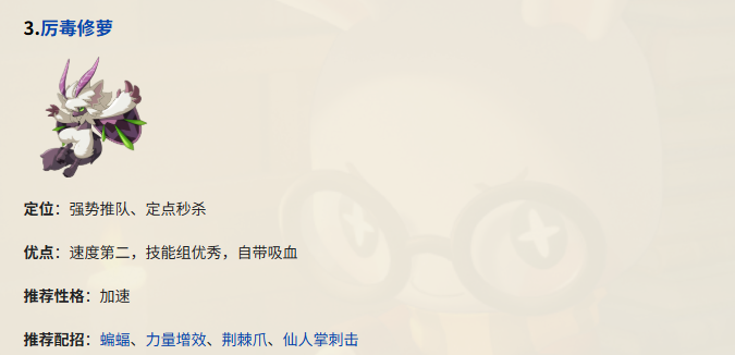 面对低速宠物时,有先手权可以直接秒;碰到高速宠物时,应该通过联防逼退。