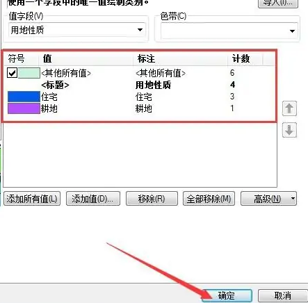 6、完成类别添加,设置用地性质对应的颜色,点击确定。