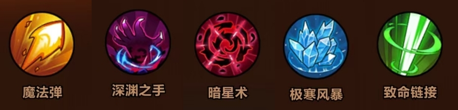 技能选择:魔法弹+深渊之手+暗星术+极寒风暴+致命链接