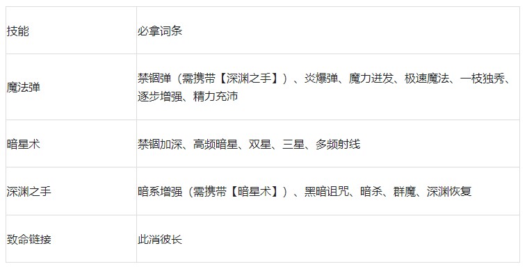 注:本流派需要获得【深渊之手】、【暗星术】,且【魔法弹】技能需升至22级以上,否则很容易会陷入伤害不足的情况,因此只建议后期使用。