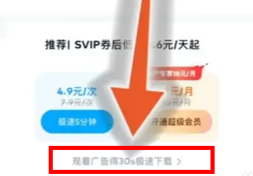 嫌弃百度网盘下载慢?那我们就可以使用看广告特权看完就有三十秒的超级加速的特权了,我们只需要点击下方的观看广告,随后就可以使用券进行加速了。