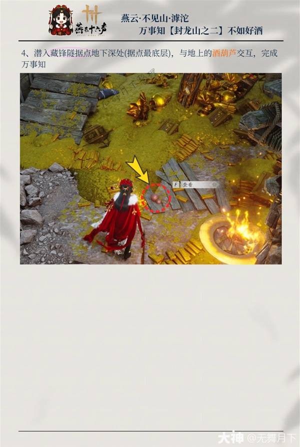 4、潜入藏锋隧据点地下深处(据点最底层),与地上的酒葫芦交互,完成万事知