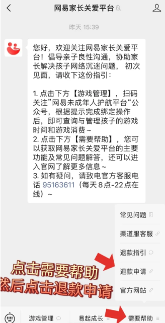 4. 根据客服指引,前往"网易家长关爱平台"