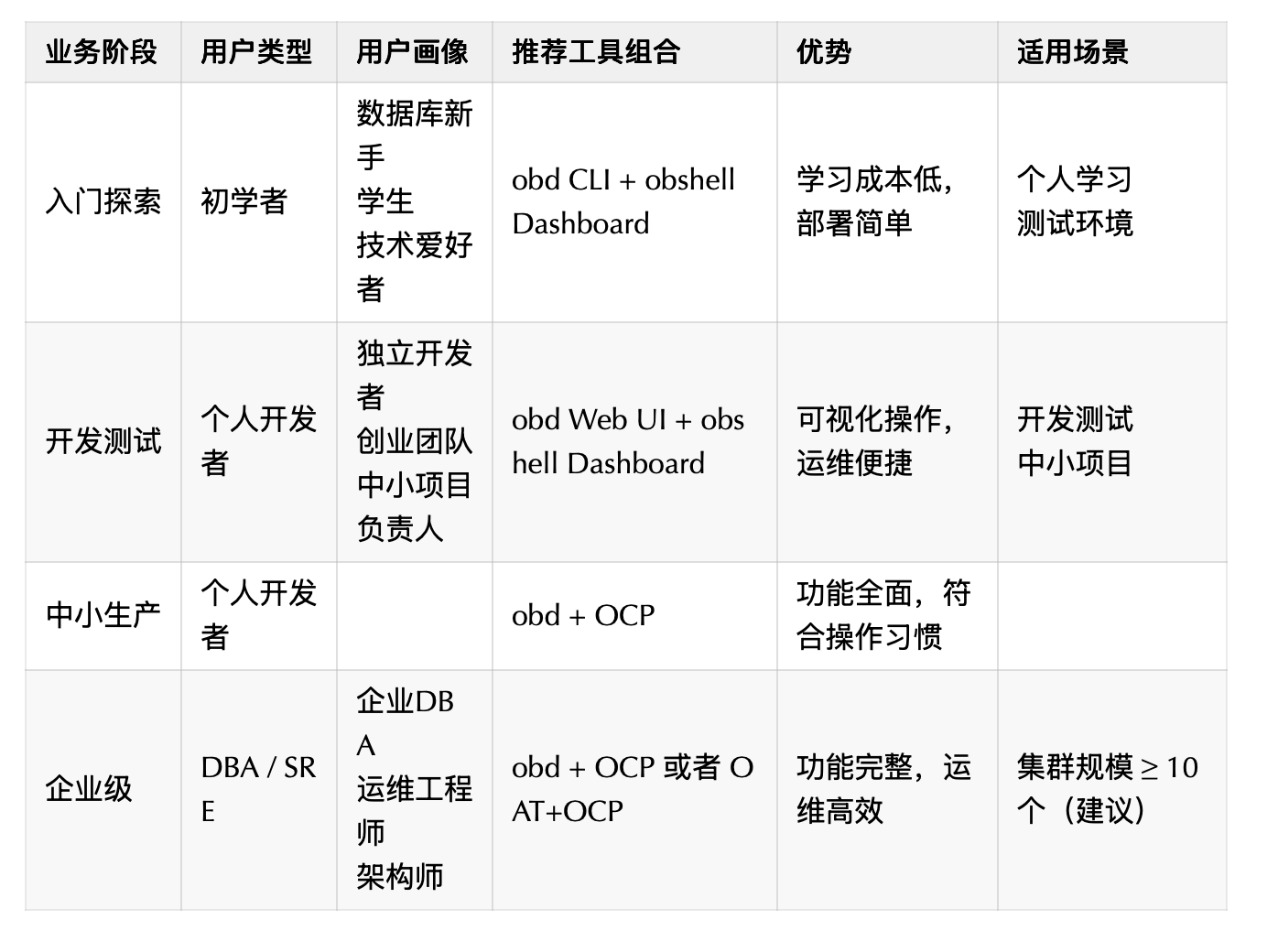 然而,对于社区版新用户或希望从社区版迁移到企业版的用户而言,OAT、obd、OCP与obshell / obshell Dashboard等工具的定位和关系常常令人困惑。