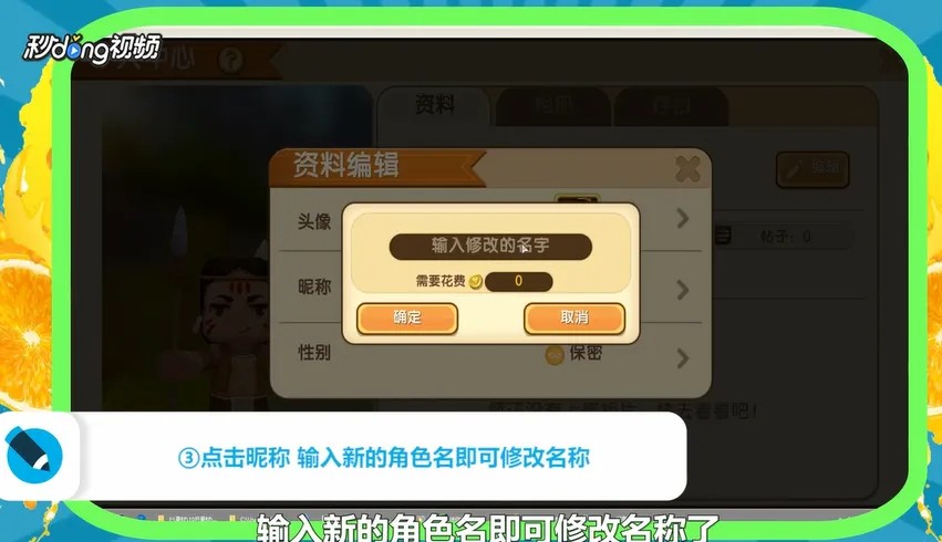 点击“昵称”,在弹出的对话框中输入新的角色名即可修改名称。