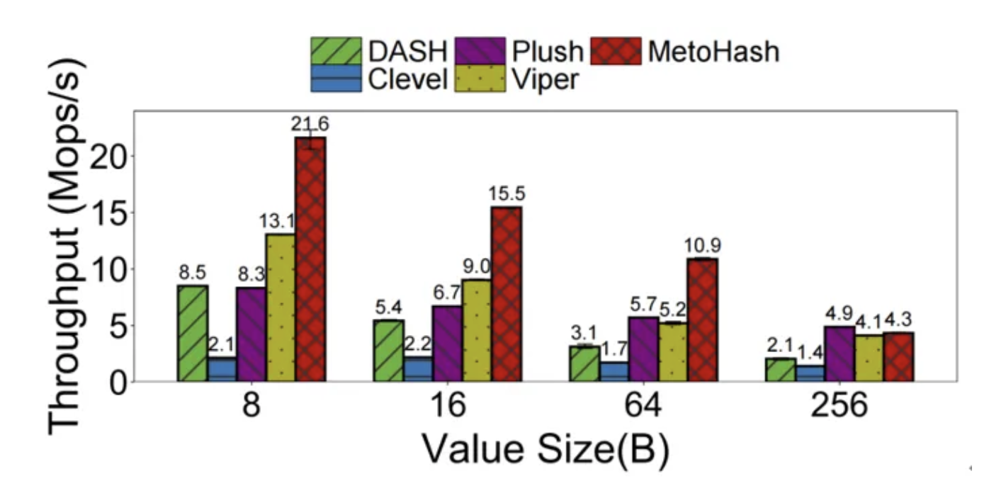 图5MetoHash相较于其他基线索引在不同键值对大小下均有明显优势