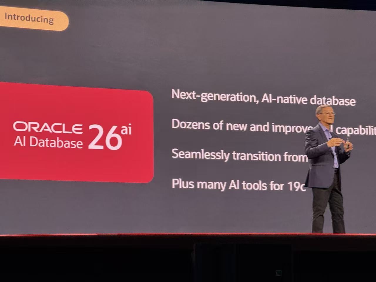 真正的惊喜在2025年10月14日到来。Oracle AI World大会上,Larry Ellison亲自宣布: Oracle AI Database 26ai 正式取代 Oracle Database 23ai。从23ai过渡到26ai极其简单。只需应用2025年10月的RU 23.26.0,无需升级或重新认证。