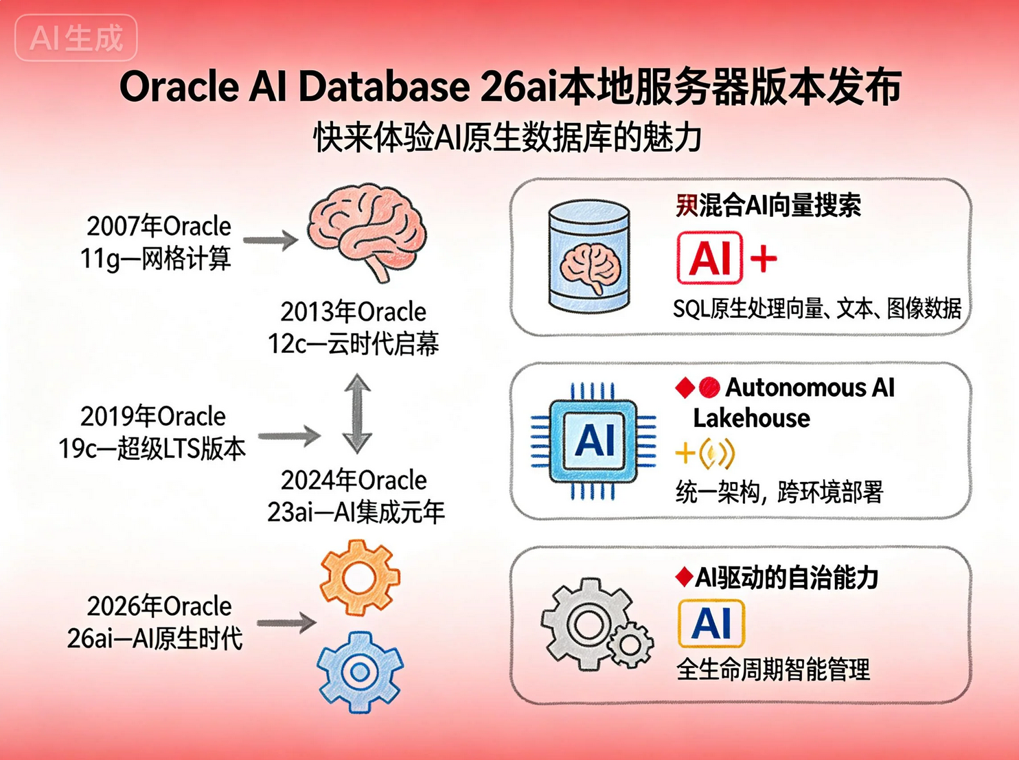 Oracle AI Database 26ai 本地服务器版本的正式发布,不仅是产品迭代,更预示着数据库行业三大根本性变革:
