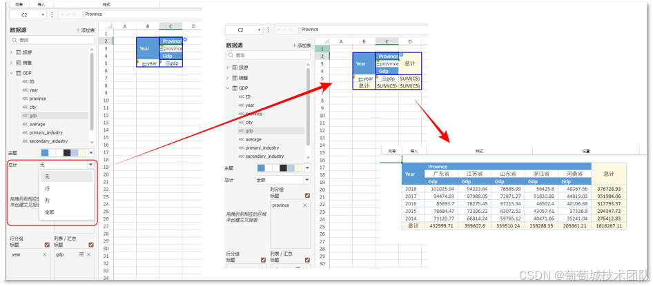 - 行汇总:在分组数据下方添加小计、累计值,清晰展示局部数据聚合结果;