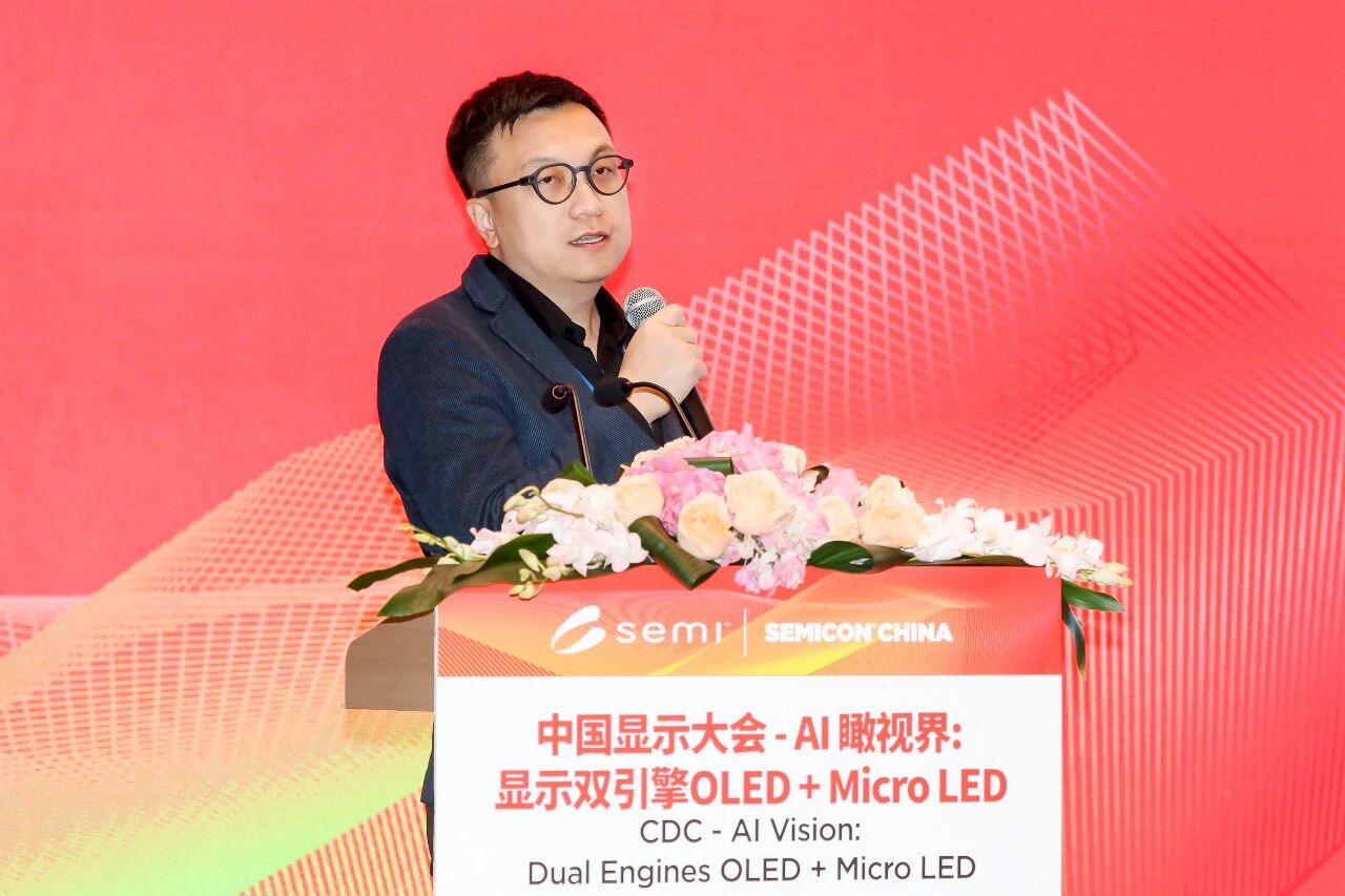 3月25日上海,SEMICON CHINA 2026同期的「中国显示大会-AI瞰视界:显示双引擎OLED+Micro LED」论坛上,广纳四维联合创始人兼CTO史瑞博士发表主题演讲,正式发布了基于碳化硅(SiC)光波导芯片的超轻薄近视镜片解决方案,为近视人群开启了无缝接入AI交互系统的新篇章。