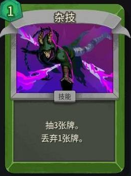 构筑该流派时,战术大师与杂技两张卡构成不可替代的双核。杂技未升级时可抽3弃1,升级后变为抽4弃1,是整套卡组维持节奏的核心过牌手段;战术大师则在升级前提供1点能量,升级后提升至2点能量——每次成功弃牌即稳定获取能量收益。但需注意:单次触发该联动会额外生成两张待处理卡牌,因此需搭配生存者等弃牌辅助卡,或利用背包类能力进行资源消化。