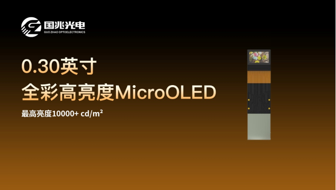 国兆光电0.30英寸全彩MicroOLED,最高亮度达到10000 cd/m²以上,可完美适配于各种AR光学技术。产品采用高效率叠层OLED器件结构,让OLED器件发光效率大幅提升;结合微透镜工艺精准引导光线,使得更多光线得以汇聚入眼。新型的电流型驱动电路架构,在0.30英寸屏幕上,实现了1280×720的高清分辨率,像素密度突破4800ppi。电流型芯片驱动和叠层OLED器件架构,使得产品满负荷工作功耗约150 mW,平均工作功耗低于120 mW,有效延长AR眼镜的续航时间。