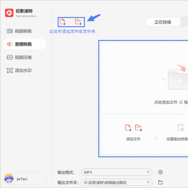 旺影速转支持点击打开文件来添加,也支持直接拖拽文件至软件内来添加,两种方式均支持批量添加文件。