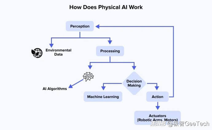英伟达所定义的“物理AI”(Physical AI) 则提出了一种不同于传统学习驱动架构的技术方向,其核心是理解现实世界中的因果关系与物理规律,通过仿真、合成数据生成和端到端模型来训练AI在物理环境中的感知、推理与行动能力,在此基础上实现与现实世界的交互。这一变化并非单点技术升级,而是面向真实世界应用的系统级重构,尤其体现在对极端和长尾场景的处理能力上。