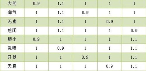 以胆小、急躁、开朗和天真为代表的性格,可以提升10%的速度属性。作为交换,它们会分别减少10%的物理攻击、物理防御、魔法攻击和魔法抗性。对于需要抢先手的宠物来说是不错的选择。