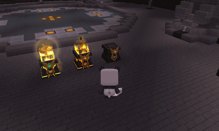 在祭坛位置,我们会看到三个祭台,这三个祭台是用来召唤虚空幻影boss的。召唤虚空幻影仅有三个祭台是不够的,还需要准备烈焰断剑和神圣果实以及巨人之眼三种材料。