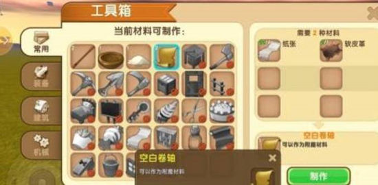 4、准备好空白卷轴和皮革,即可合成传送卷轴。