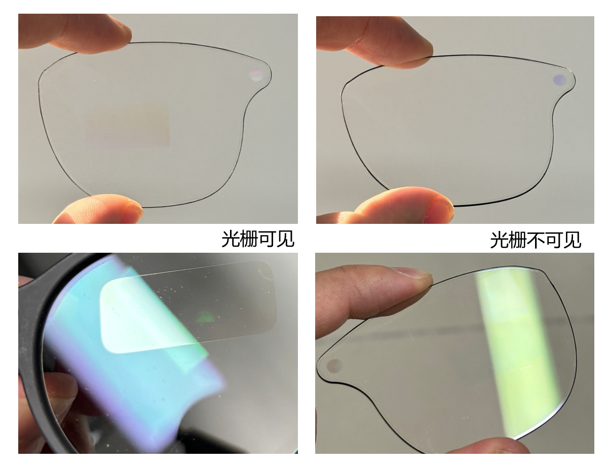 想要接近普通镜片,轻薄还不够,光栅须具备良好的视觉隐蔽性,镜片通透度更需向常规镜片看齐。市面上已售带显示的AI眼镜,被用户诟病较多的问题之一正是光栅不隐形,有违和感,同时光栅区发黄,通透度不够,引发视觉疲劳等问题。
