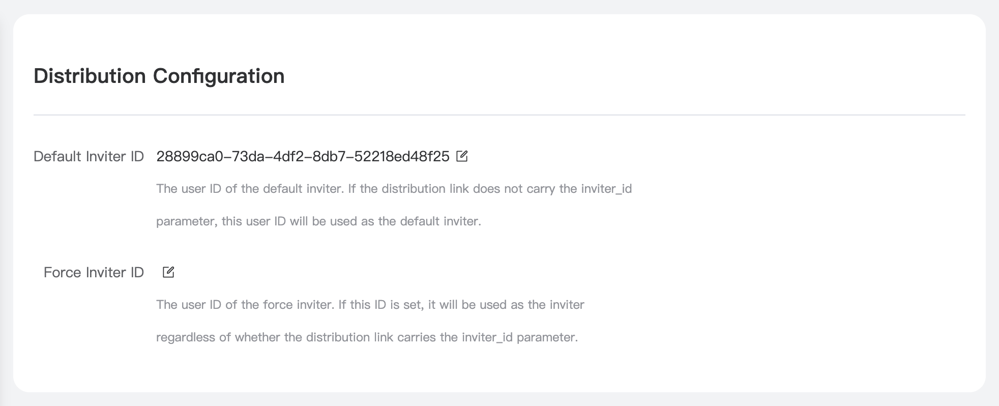 这里我们可以修改两个信息,一个叫默认邀请人 ID、一个叫强制邀请人 ID,说明如下: