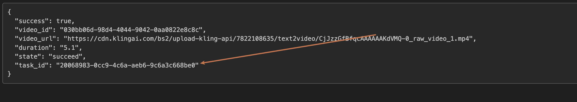 成功请求后,API 将返回任务的详细信息,例如: