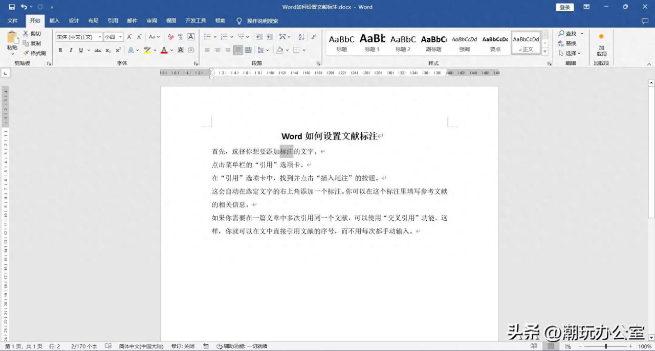 首先,将光标定位到需要插入参考文献标号的位置。然后,点击“引用”选项卡。