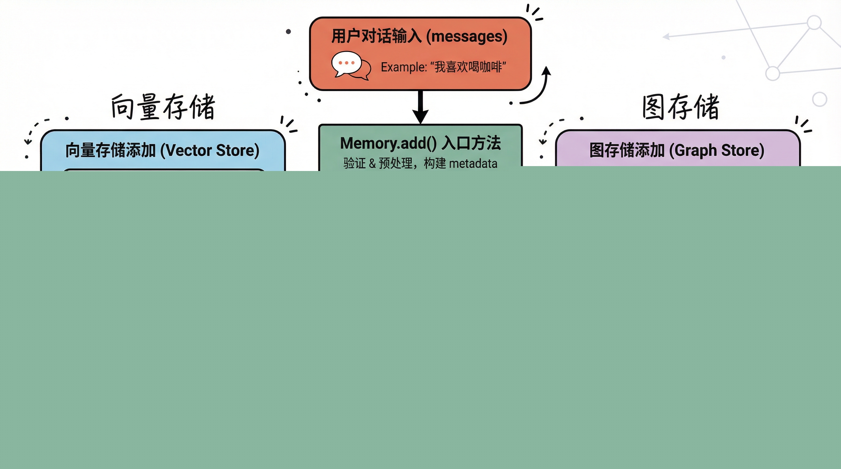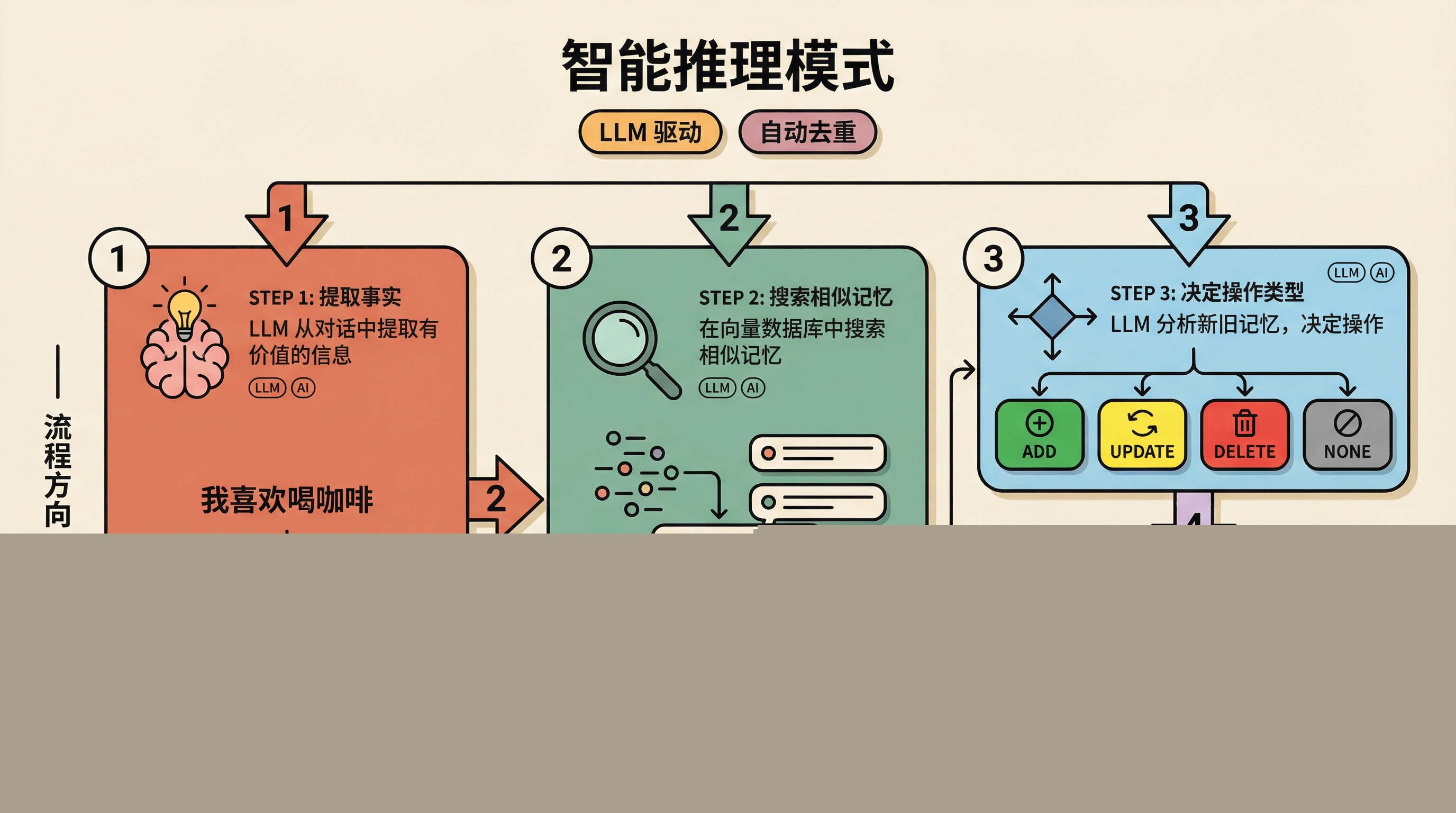 Mem0 的记忆添加不只是简单的存储,而是包含了: