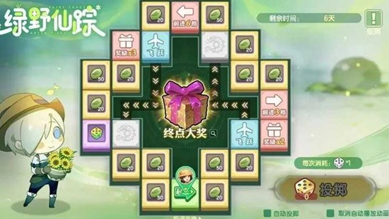 绿野仙踪是一个路径积分收集玩法。玩家使用在春日辛勤中获得的踏青骰子进行移动,每到达一个格子就能获得随机数量的踏青积分。当成功抵达终点时,可以一次性领取200点踏青积分。路径上的一些特殊格子还设有额外奖励,比如稀有材料或限定外观的兑换券。