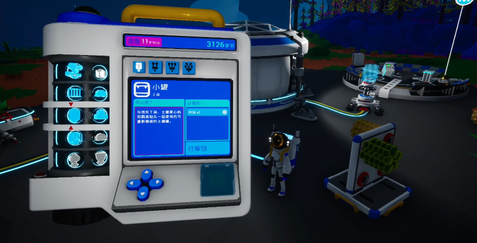熔炉一开始是处于锁定状态,需在科技界面消耗指定材料解锁,消耗1个化合物与2个树脂,解锁后即可解锁熔炉的建造权限,通过打印机打印平台,把熔炉放置在大型平台上,还要去连接对应的电缆,确保熔炉接入基地电力系统,为后续熔炼提供能源基础。