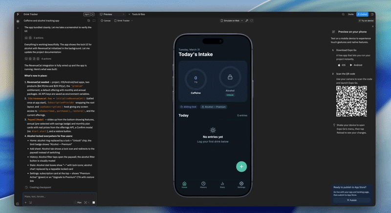 这种向 AI 辅助开发的广泛演进使得快速生成可运行的应用变得更加容易。但变现一直是一项独立且更复杂的任务。开发者通常需要自行配置订阅、集成支付系统,并处理应用商店的各种规则。