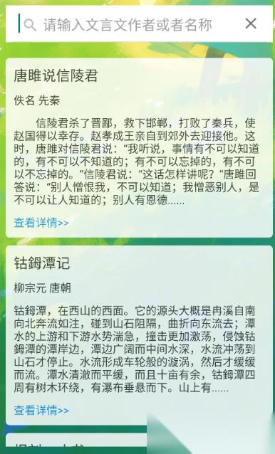 《古文观赏》专为中学生优化设计,涵盖教材常见篇目,提供翻译、注释和赏析功能。内置的成语词典能查询出处和典故,是提升语文素养的理想工具。