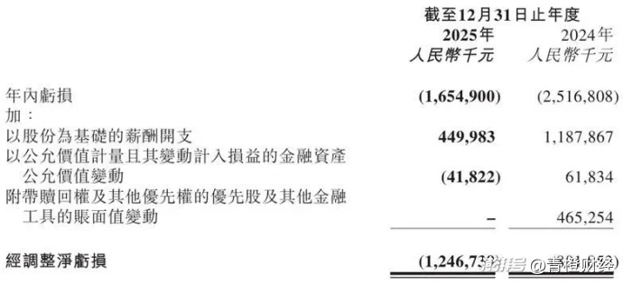 文远知行同样不乐观,虽然全年净亏损同比收窄,但主要得益于非现I金项目的调整,即以股份为基础的薪酬开支由2024年的11.88亿元降至4.50亿元,剔除这一非现I金因素后,公司Non-IFRS(非国际财报财务报告准则)经调整净亏损仍为12.48亿元,同比扩大55.5%。