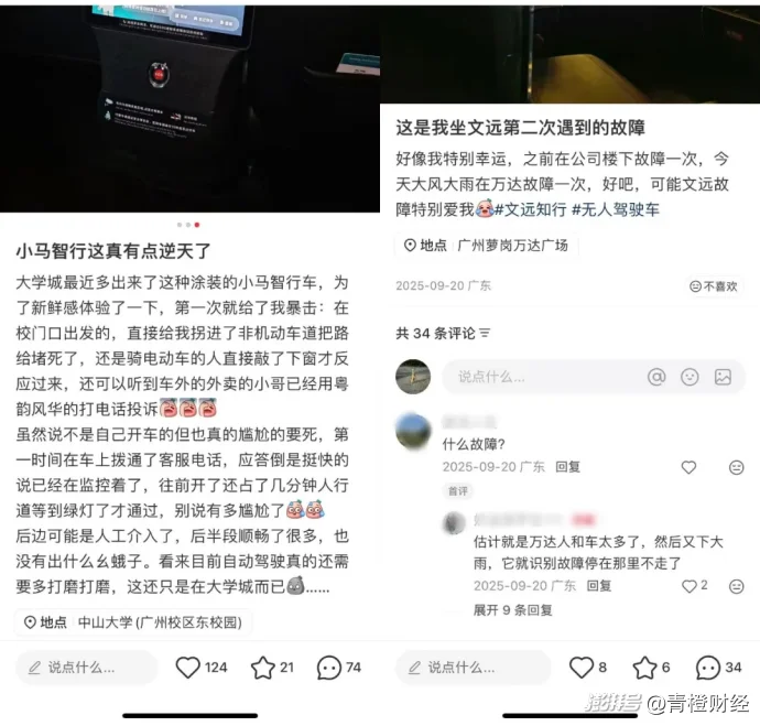 在社交平台上,关于Robotaxi的吐槽并不鲜见,有的用户遭遇车辆突发故障;有的Robotaxi突然驶入非机动车道,还有的在行驶过程中出现碰撞……