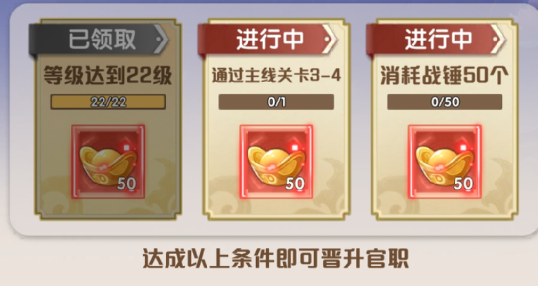 游戏内置智能挂机系统,支持离线资源积累。玩家下线后,b队将持续自动扫荡已通关关卡,稳定获取经验、铜钱、将魂等基础养成材料。每日上线即可领取累计收益,无需实时操作即可维持成长节奏。该机制有效降低时间门槛,兼顾碎片化娱乐需求与长期发展深度,使不同活跃度的玩家均能稳步提升官职等级与综合实力。