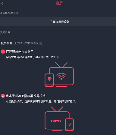 在播放界面点击右上角的投屏按钮(全屏模式下才会显示),系统会自动搜索可用设备。需要注意的是,手机和电视必须连接同一WiFi网络才能成功投屏。
