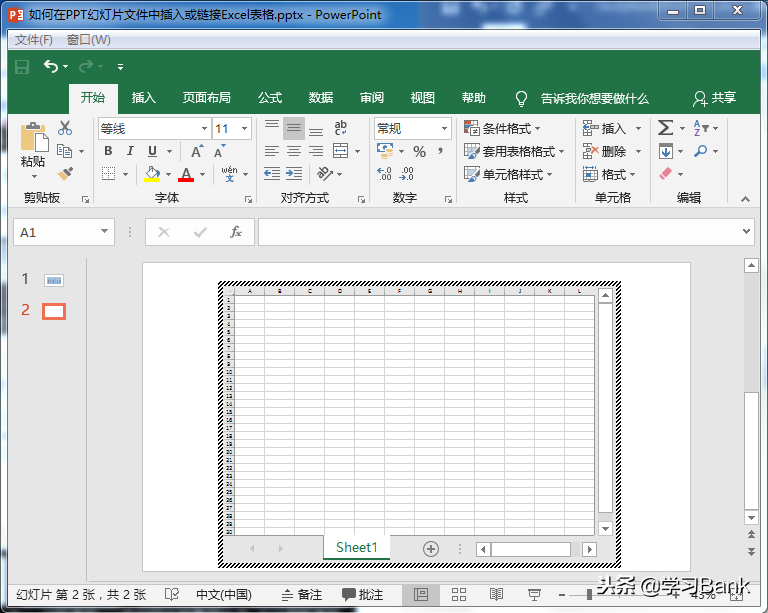 6. 点击“确定”,excel表格就插入到ppt中了。