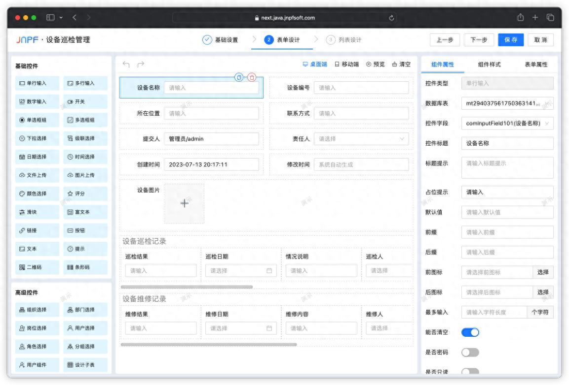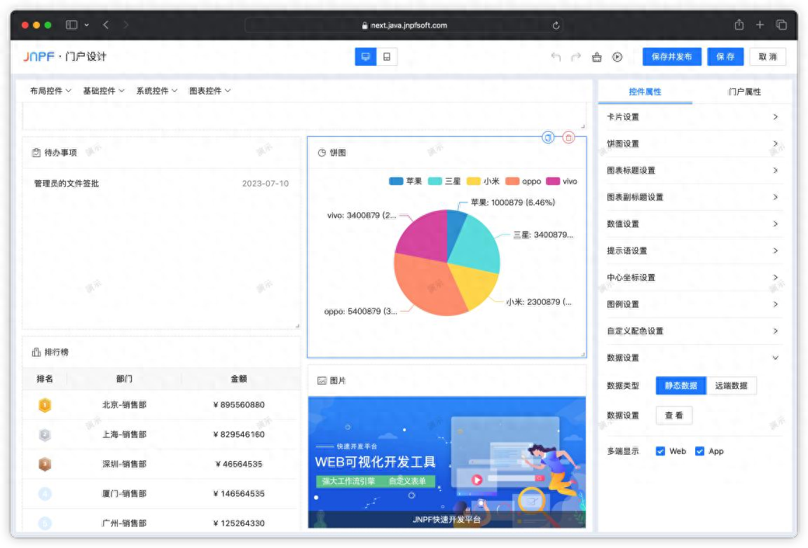 零代码开发:配备大量可复用控件,通过操作界面元素,拖拽控件自动生成可视化应用;