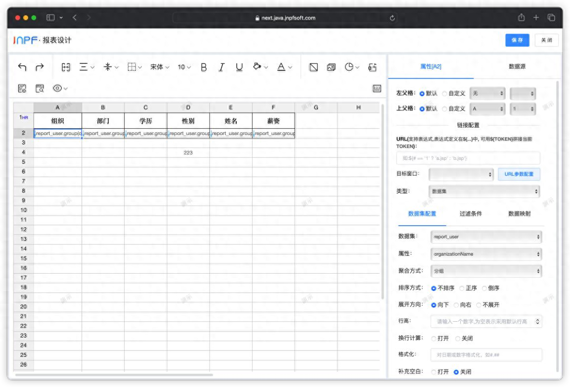无需开发任何代码,用户只需在界面上配置一系列参数即可实现多种类型报表的配置、在线渲染报表内容、报表导出、打印等功能;